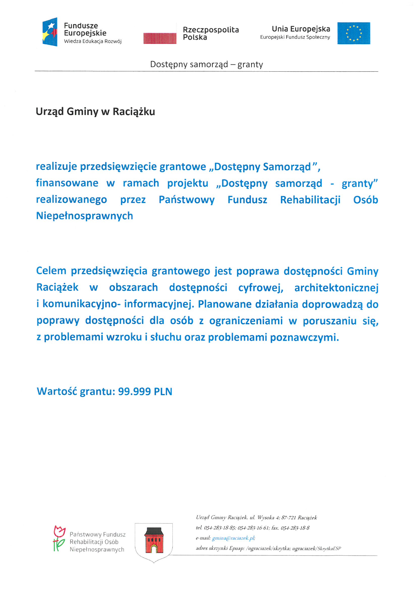 Projekt "Dostępny samorząd - granty realizowane przez Państwowy Fundusz Rehabilitacji Osób niepełnosprawnych"